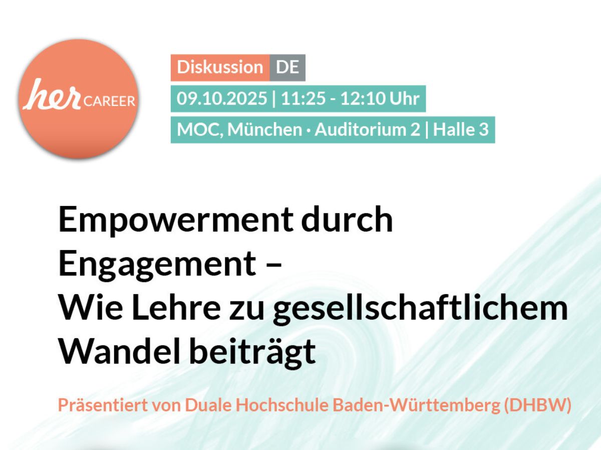 Am 09. und 10. Oktober 2025 öffnet die herCareer Expo in München ihre Tore für alle Frauen, die ihre Karriere pushen möchten. Organisiert von den Professorinnen Prof. Dr. Marthe Kaufholz (DHBW Mosbach) und Prof. Dr. Yvonne Zajontz (DHBW Heilbronn) ist die DHBW bereits seit mehreren Jahren mit einem eigenen Stand auf Deutschlands führender Karrieremesse für Frauen vertreten. Das Ziel: Interessierte Frauen für eine Laufbahn als Professorin oder für Lehraufträge an der DHBW begeistern.