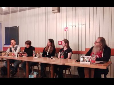 Sowohl die Lesung am 19.10.24 beim BuchmesseCon (BuCon), eine der größten Veranstaltungen zur phantastischen Literatur, sowie am 20.10.24 bei der Lichtmeile, ein Kulturevent der Mannheimer Kunst-, Musik- und Literaturszene, stieß altersunabhängig beim Auditorium auf großes Interesse und regte zu tiefgründigen Diskussionen an. Weitere Veranstaltungen rund um Campus 2049 werden hier bekanntgegeben. Links ein Schnappschuss der BuCon-Lesung (v. r. n. l.): Friedhelm Schneidewind, Katja Jansen, Nicole Hobusch, Ele Kver, Kai Focke (aufgenommen von der Redaktion des Weltenportal-Magazins).
